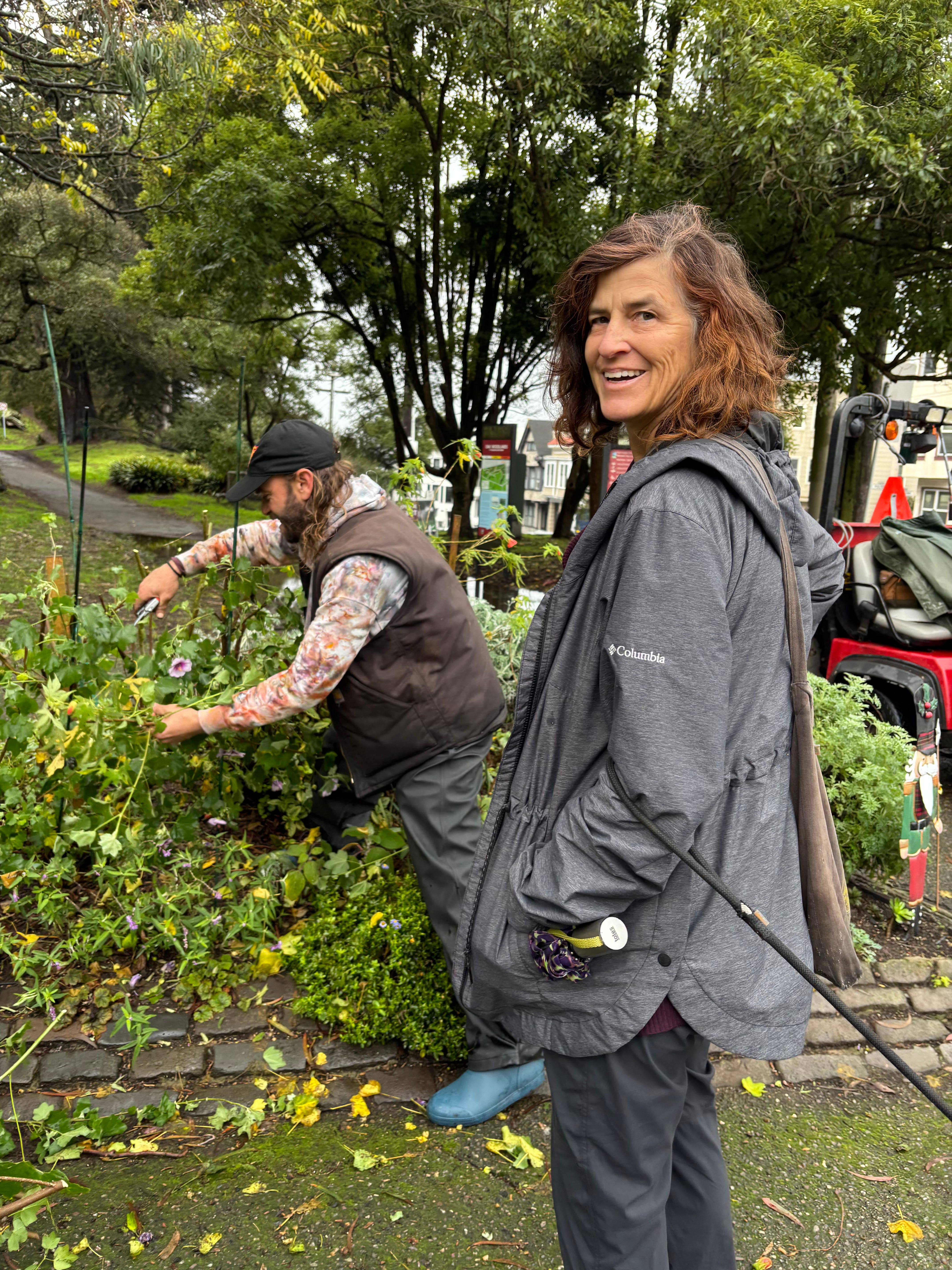 In addition to honoring Russell, the volunteers want to “make the corner more inviting and welcoming because it’s a major entrance to Golden Gate Park,” Tièche says. Unlike other park entrances, there’s no signage announcing that fact. Sometimes, Tièche says, she’ll be working there and tourists will stop and ask directions to the park. “And I’m like you’re in it.”